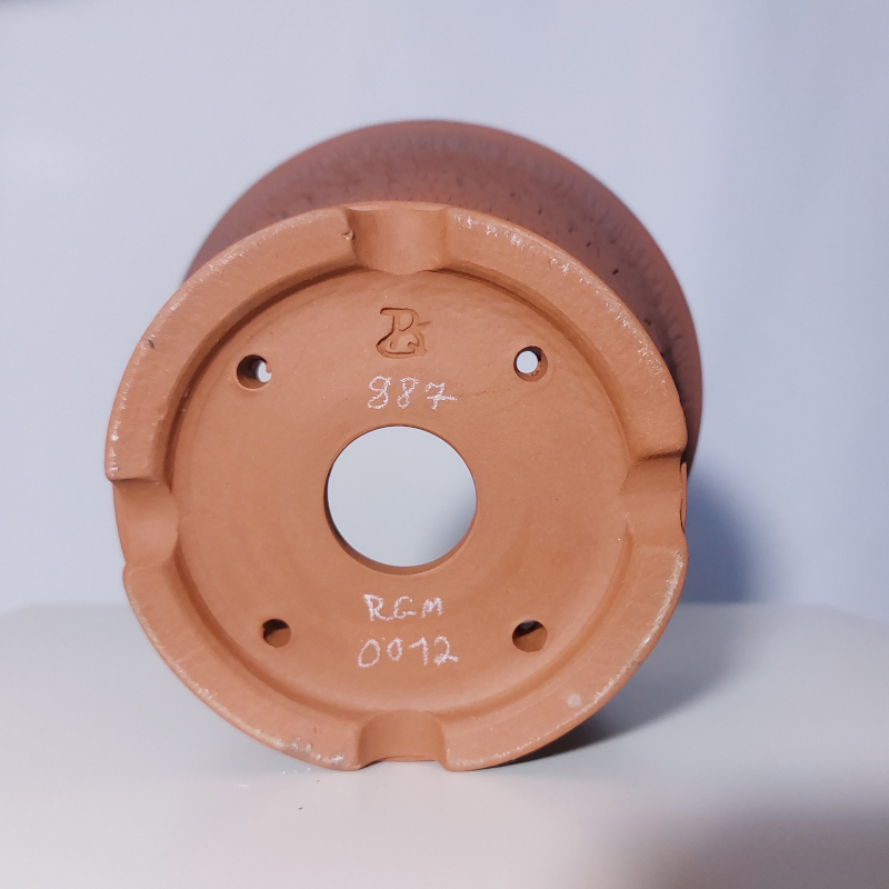handgemacht, auf Töperscheibe gedreht / rund, mit Wasserablaufloch, Fuß mit seitlichem Wasserauslauf und Drahtlöchern
