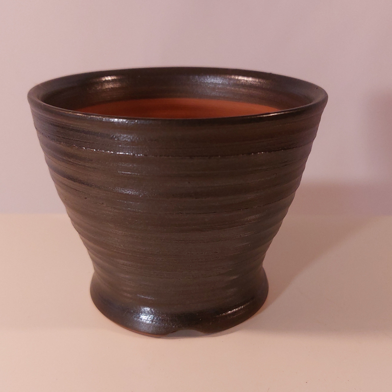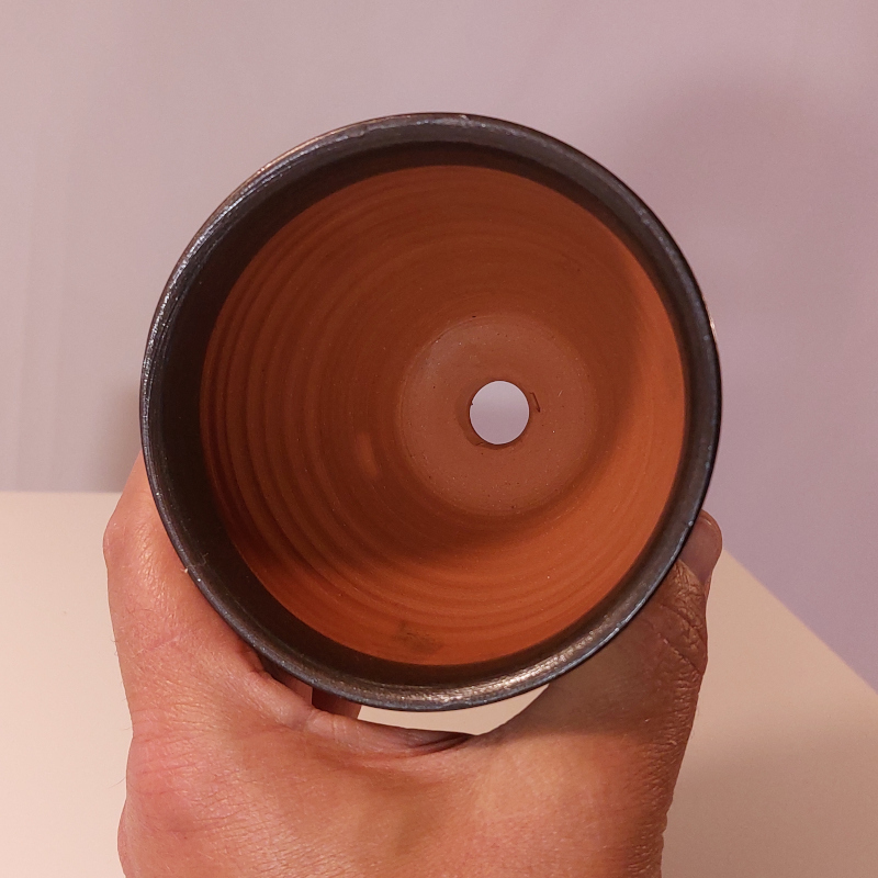 handgemacht, auf Töperscheibe gedreht / rund, mit Wasserablaufloch, Fuß mit seitlichem Wasserauslauf