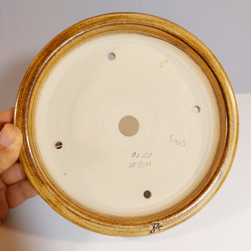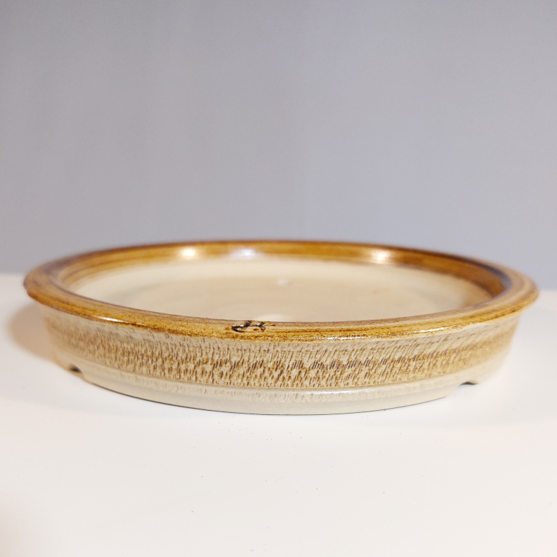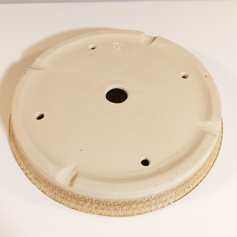 WGM-0018: Flache runde Bonsaischale mit außergwöhnlicher Oberflächenstruktur ca. 18x3 cm