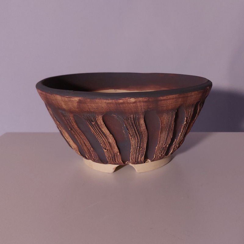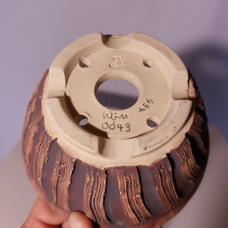 - beiger Steinzeugton - Wasserablaufloch - Drahtlöcher - Fuß mit seitlichem Wasserablauf  |