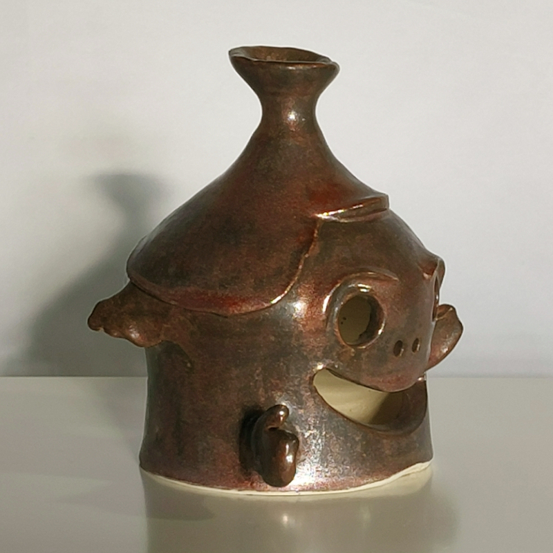 Windlicht (Geist) für innen oder außen, aus dicht gebranntem hellen Steinzeugton.