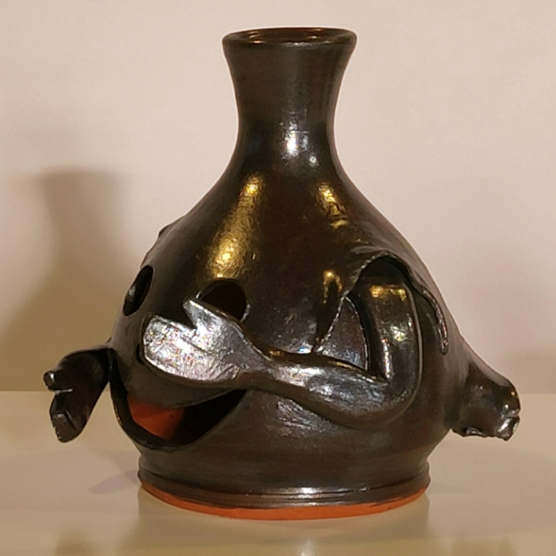 Windlicht (Geist) für innen oder außen, aus dicht gebranntem roten Steinzeugton.