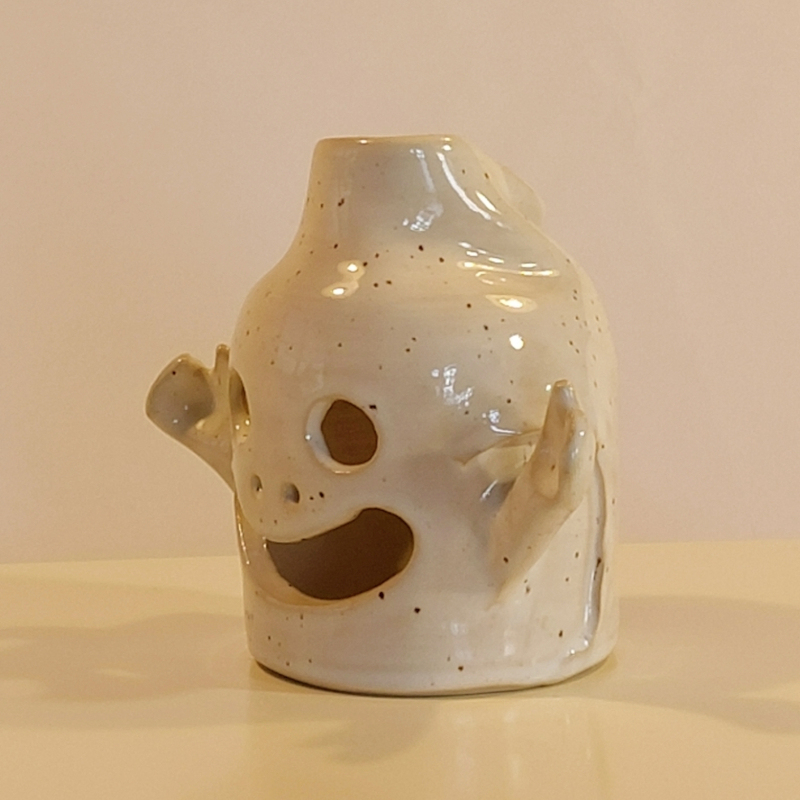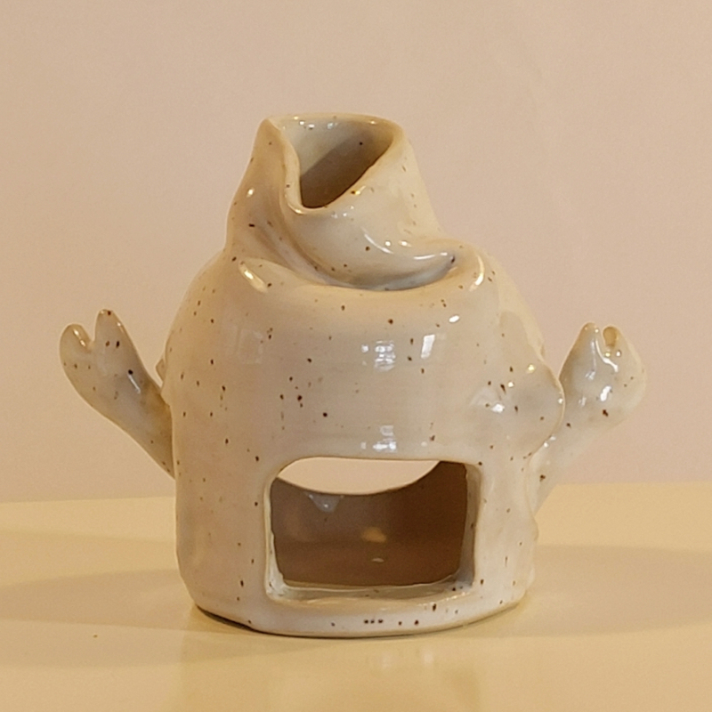 Windlicht (Geist) für innen oder außen, aus dicht gebranntem hellen Steinzeugton.