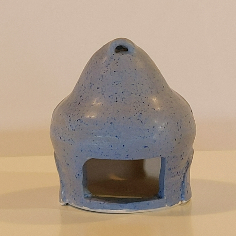 Windlicht (Vogel) für innen oder außen, aus dicht gebranntem hellen Steinzeugton.