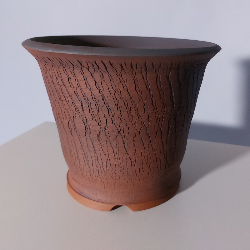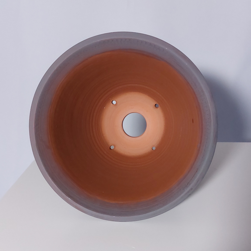 handgemacht, auf Töperscheibe gedreht / rund, mit Wasserablaufloch, Fuß mit seitlichem Wasserauslauf und Drahtlöchern