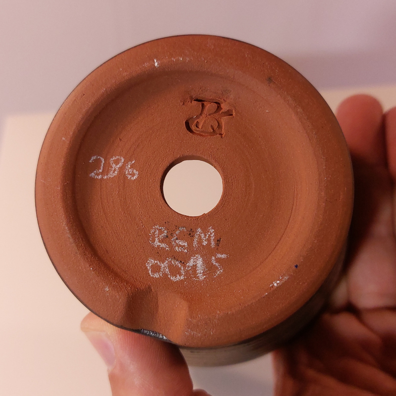 handgemacht, auf Töperscheibe gedreht / rund, mit Wasserablaufloch, Fuß mit seitlichem Wasserauslauf