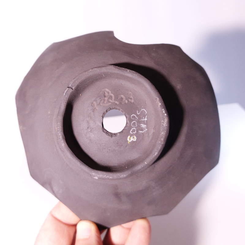 - schwarzer unglasierter Steinzeugton - Wasserablaufloch - Drahtlöcher - Fuß |