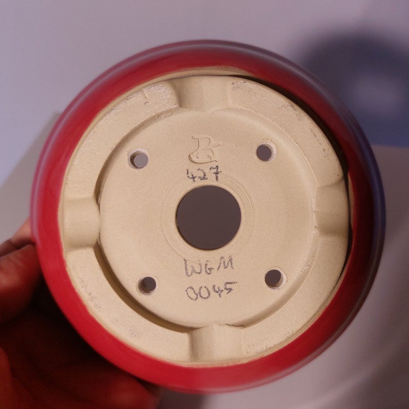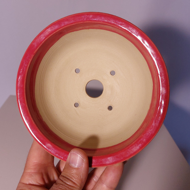 - beiger Steinzeugton - Wasserablaufloch - Drahtlöcher - Fuß mit seitlichem Wasserablauf  |