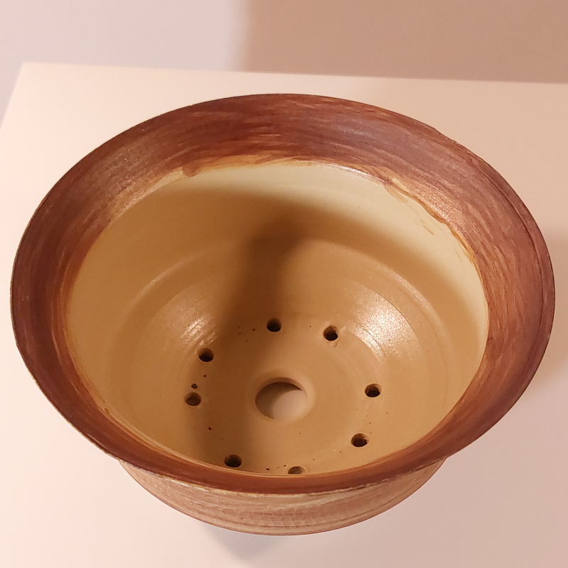 - beiger Steinzeugton - Wasserablaufloch - Drahtlöcher - Fuß mit seitlichem Wasserablauf  |