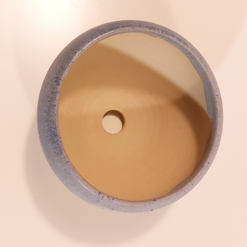 - beiger Steinzeugton - Wasserablaufloch - Fuß mit seitlichem Wasserablauf - Rand wird oben wieder enger / Schale hat Hinterschnitt |